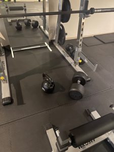 ブルガリアンスクワット24kg×20回×3セット、45kg×10回×2セット、45kg×10回→24kg×10回→10回×1セット。